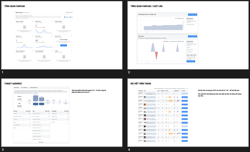 – Báo cáo này dành cho ai? Cho sếp, cho nội bộ team thì mức độ quan tâm các vấn đề cũng khá khác nhau.