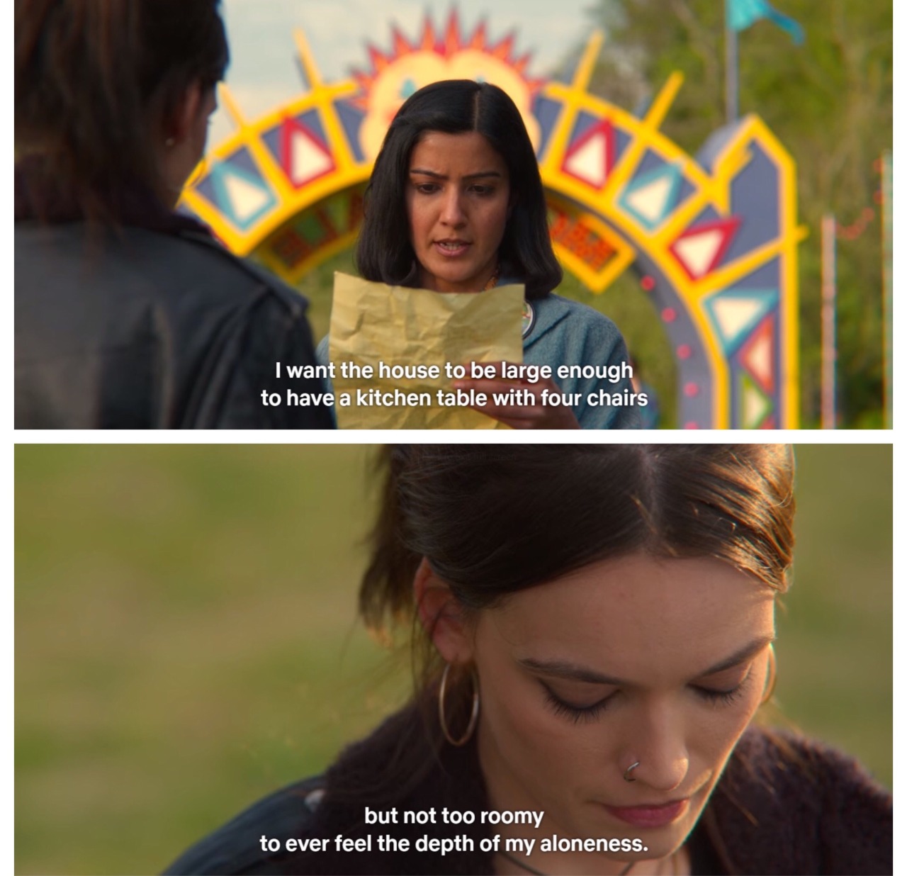 “Trong mười năm nữa, tôi muốn sống trong một căn nhà có cửa sổ lớn. Tôi muốn căn nhà đủ lớn để vẫn có bàn bếp với bốn cái ghế nhưng không quá rộng để không cảm thấy sự cô độc của tôi. Vì có lẽ, tôi sẽ ở một mình. Nhưng tôi nghĩ sự cô độc sẽ không bao trùm khi có cửa sổ, vừa bảo vệ tôi mà vẫn để tôi ngắm nhìn thế giới.”