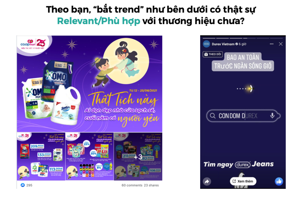 Message: Thông điệp bạn muốn truyền tải trong bài đăng, trong chiến dịch đó nhờ bắt trend thì nó có tính hiệu quả hơn hơn, có kết nối được với thông điệp không?