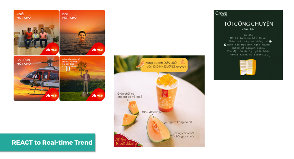 Với real-time trend thì có muôn kiểu trend: có thể đó là một ngôn ngữ của cư dân mạng, lời bài hát đang hot, một sự kiện nào đó vừa mới diễn ra tạo nguồn cảm hứng “sáng tác”, một bộ phim truyền hình – điện ảnh được nhiều sự quan tâm…